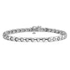 Natural Diamonds set in a unique crossover X link style bracelet made from Sterling Silver then Rhodium plated for the utmost shine and tarnish resistance. Push latch style closure with outside safety clasp. Approximately 7" in length and 5mm wide set with 35 natural diamonds.