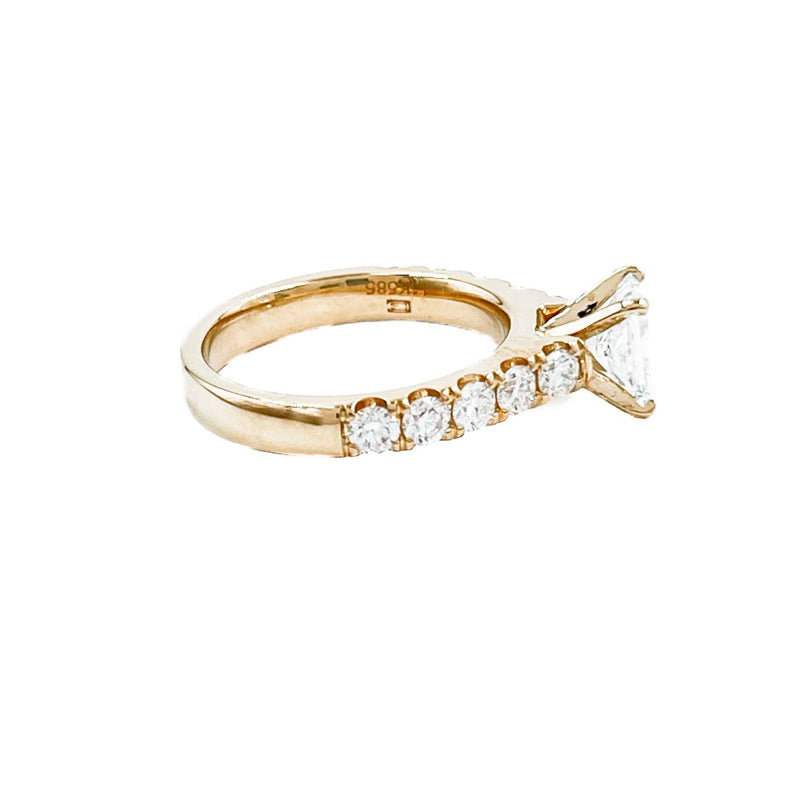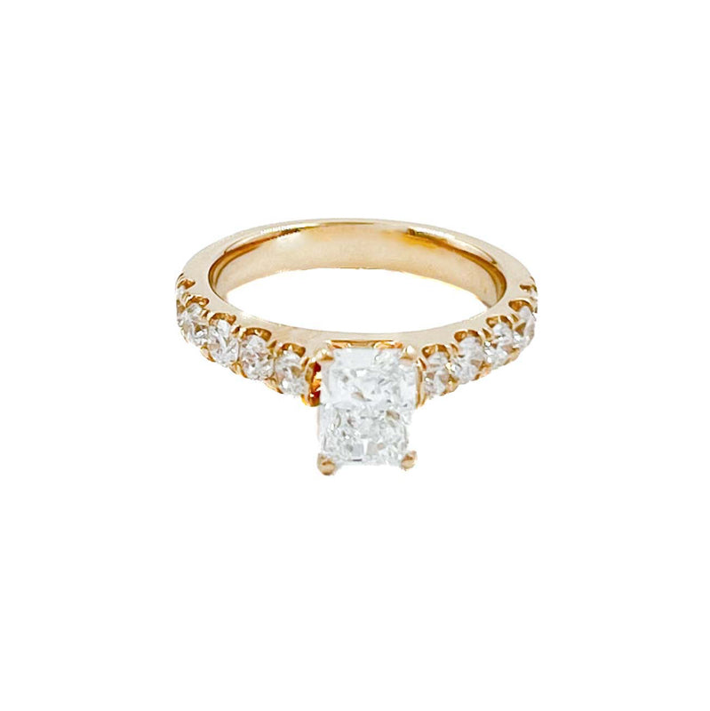 Natural Diamond/Radiant Lab Solitaire and 14k Gold Accent Ring